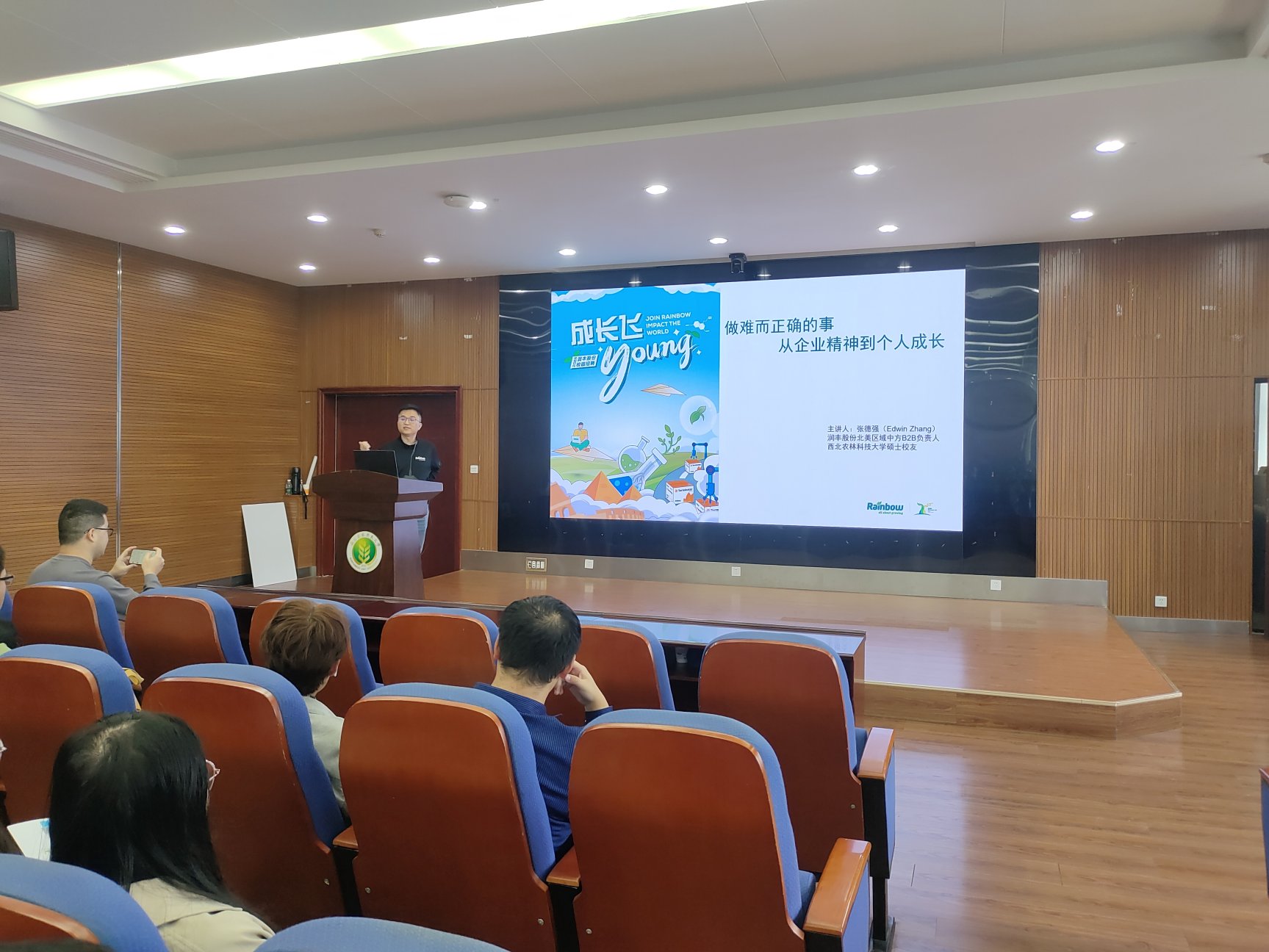 讲座中,张德强结合自身成长与职业发展经历,首先从“破题——做难而正确的选择”入手,鼓励同学们在面对职业抉择时,勇于挑战自我,选择那些虽具挑战但符合长期价值与个人成长的方向。在“筑基——专业深度是跨界的前提”部分,他强调了扎实的专业知识是未来实现跨领域发展的根本基石。随后,在“跨界——复合能力决定职业宽度”环节,他以自身为例,阐述了在精通专业的基础上,积极拓展英语沟通、跨文化协作、供应链管理、数据分析及客户服务等综合能力,对拓宽职业道路的重要性。最后,他为学弟学妹们描绘了一幅清晰的“职业坐标图”,帮助大家更好地进行自我定位与未来规划。